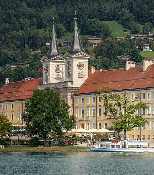 Das Kloster Tegernsee wurde 746 n. Chr. von Benediktinern gegründet. Nach der Säkularisation baute der erste bayerische König, Max I. Joseph, das Kloster zu seiner Sommerresidenz um. Heute befindet sich dort das weithin bekannte Bräustüberl. Unmittelbar am Landesteg Bräustüberl gelegen, ist es ein uriger Ort für ein kühles Bier des Tegernseer Brauhauses. Genießen Sie die gemütliche Atmosphäre und besuchen Sie vielleicht auch die ehemalige Klosterkirche St. Quirinus.